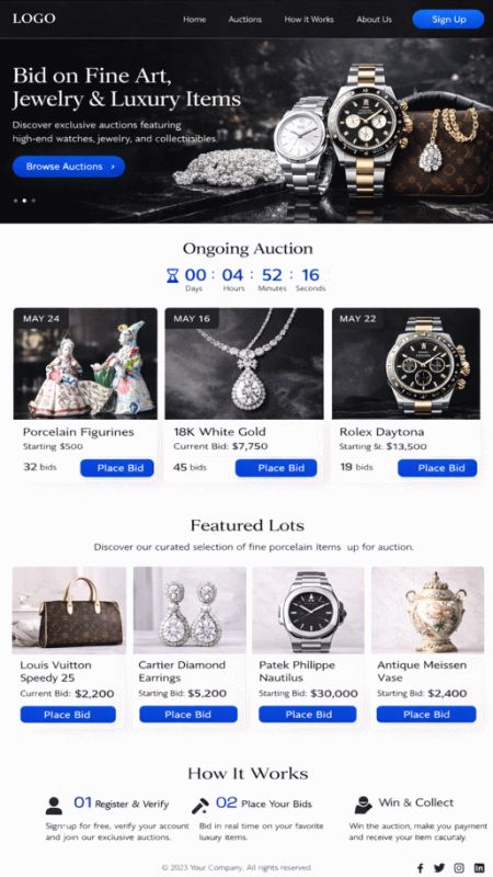 Branschmoduler erbjuder verkliga arbetsflöden: Auktion, visning, B2B-inloggning, bokning av tider, live-stream.