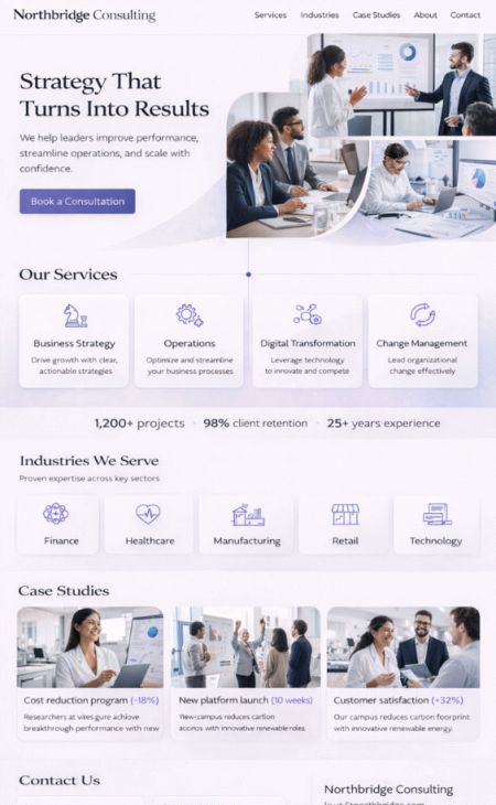 Bygg förtroende: tydliga tjänster, fallstudier, vanliga frågor, bokning av tider och livevideomöten.